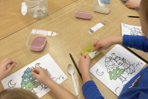 Smiltis – baltas, pludmalē un vasarā? Nebūt nē! Krāsainas, “Brīnumzemē” un ziemā. Un zinātkāri bērni, kuri ber un pēta.