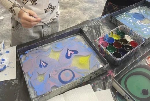 Šodien pēcpusdienā “Zvaigznīšu” grupa pārtapa par mākslas studiju, kur bērni apguva Ebru tehniku. “Zvaigznītes” ļāvās radošai izpausmei un gleznoja ūdenī, radot katrs savu unikālo mākslas darbu.