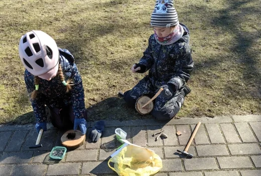 Tuk, tuk, tuk, kas tur tā klaudz? Varbūt dzenis kokā sauc? Nē, tas nav dzenis! Tie ir “Lācīšu” grupas bērni, kuri apgūst prasmes izgatavot rotaļlietas no dabas materiāliem, savienojot detaļas ar āmuru un naglām.