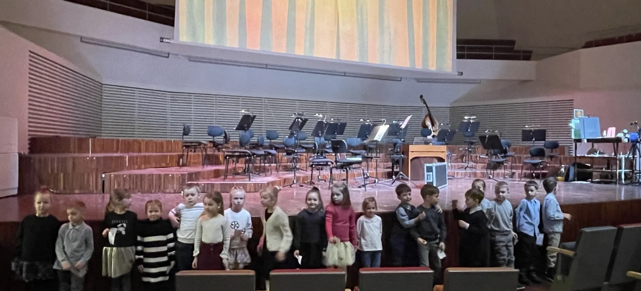 Pirms koncerta bērni iepazinās ar mūzikas instrumentiem un pat izmēģināja tos spēlēt. Fantastisks koncerts, un sajūsma bērnu acīs!