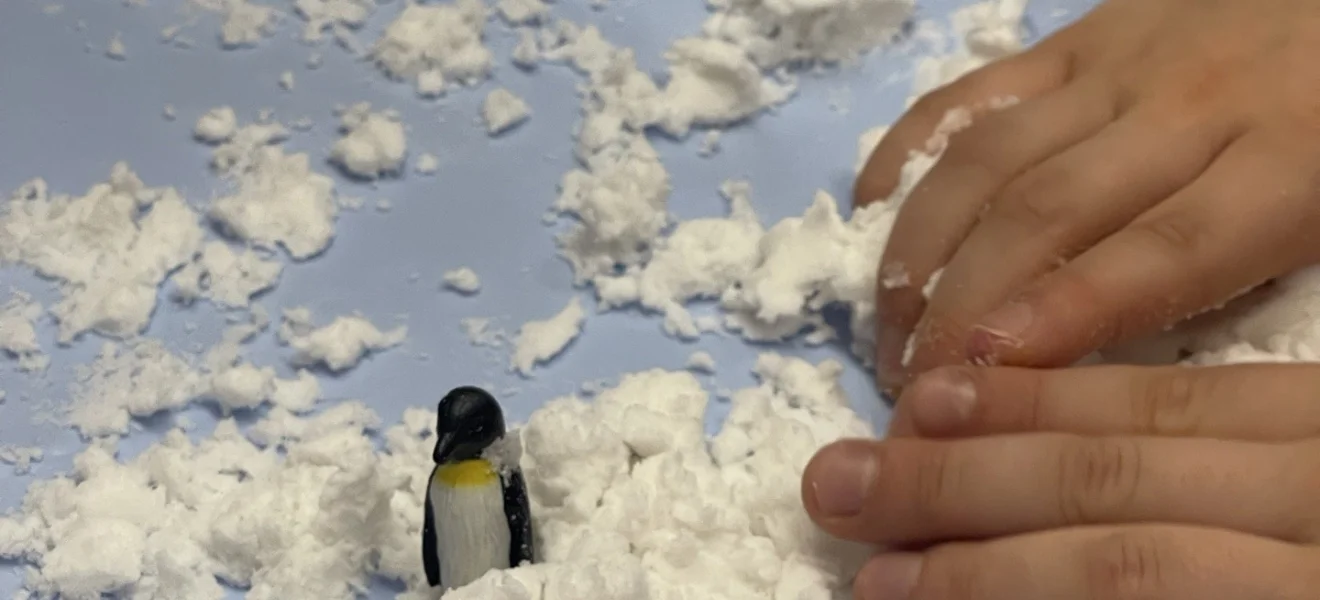Kad sniega recepte noskaidrota, seko gājiens uz veikalu un vajadzīgo sastāvdaļu pirkšana. Kad šis darbiņš paveikts, sākas pats aizraujošākais brīdis – sniega taisīšana. Eksperimentēšana, bēršana, pūšana, jaukšana, mīcīšana, vērošana un beigās secinājums – sniegs smaržo pēc tēta. Prieks bērniem un pingvīnam arī!